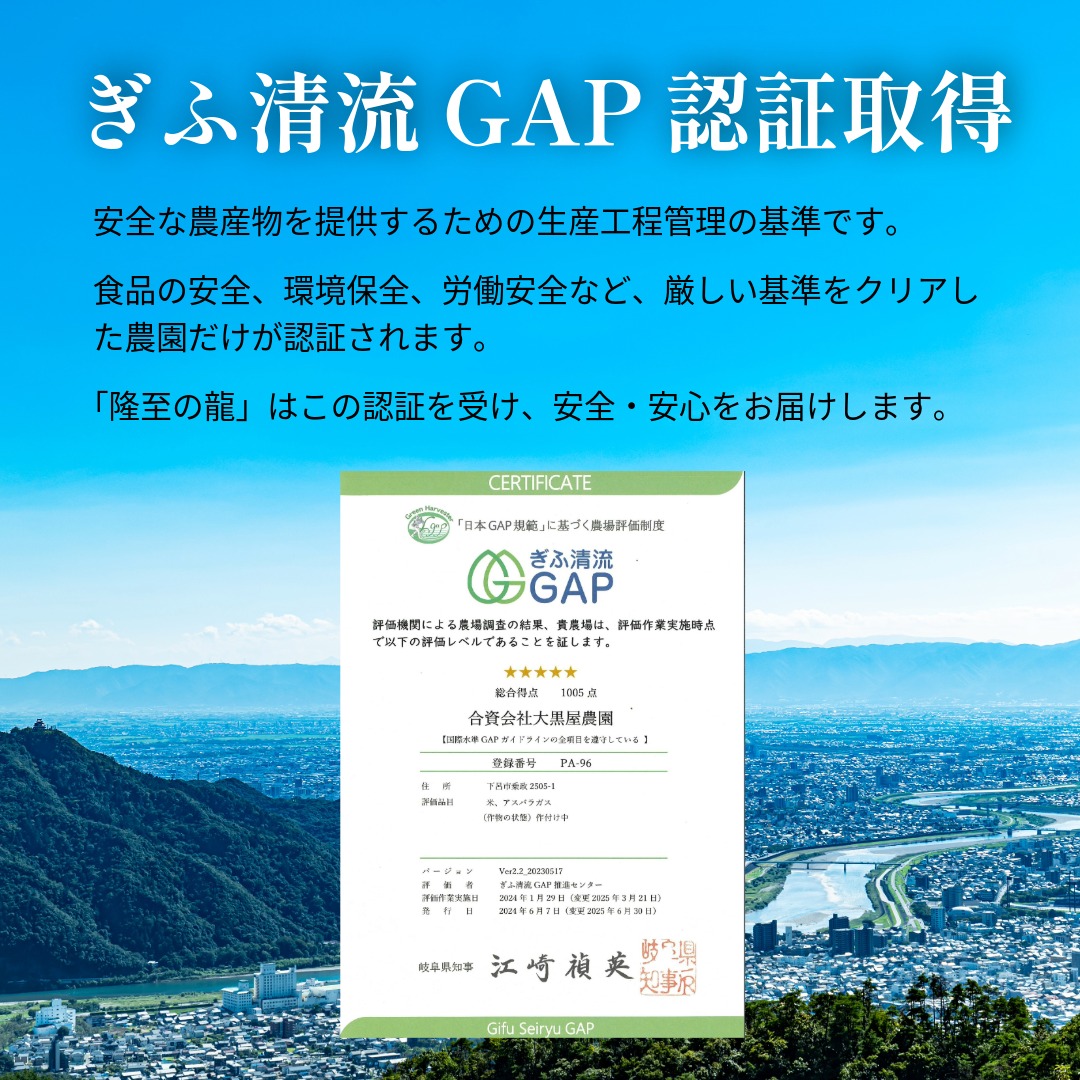 さらに、食品安全・環境保全・労働安全を徹底した岐阜県独自の認証制度 「ぎふ清流GAP認証」 を取得。